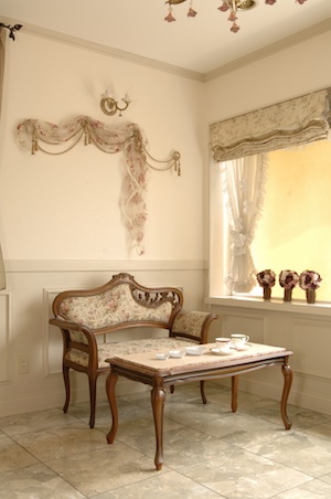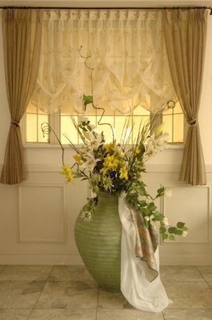 カーテンサンプルをはじめ、インテリア小物やアレンジフラワーがたくさん揃っているショールームです。